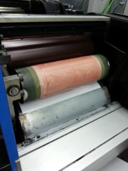 Создание рисунка на этикетке происходит в последовательном нанесении красок в заданном порядке. Каждая форма, отвечающая за свой цвет, поочередно выдвигается анилоксом (валиком), и, проходя сквозь каждую секцию, материал получает соответствующий отпечаток. Как уже отмечалось, количество цветов, предполагаемых дизайном этикетки, будет равняться числу флексоформ, однако если предполагается, что после печати материал будет дополнительно обрабатываться (например, покрываться лаком), необходимо предусмотреть для этого еще одну флексоформу.
